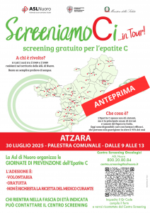Nel giorno della celebrazione della Giornata Mondiale dedicata alle Epatiti (World Hepatitis Day – 28 luglio), la ASL di Nuoro annuncia l’avvio del progetto di screening di prossimità “ScreeniamoCi”, che vivrà la sua anteprima mercoledì 30 luglio ad Atzara.